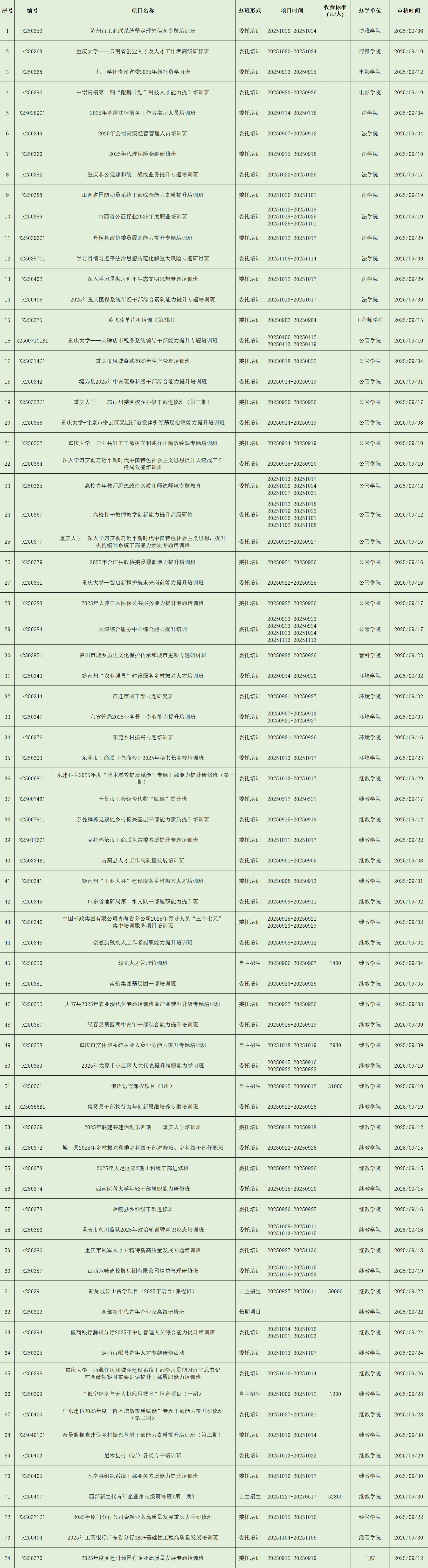 非学历教育项目列表(2025年9月)