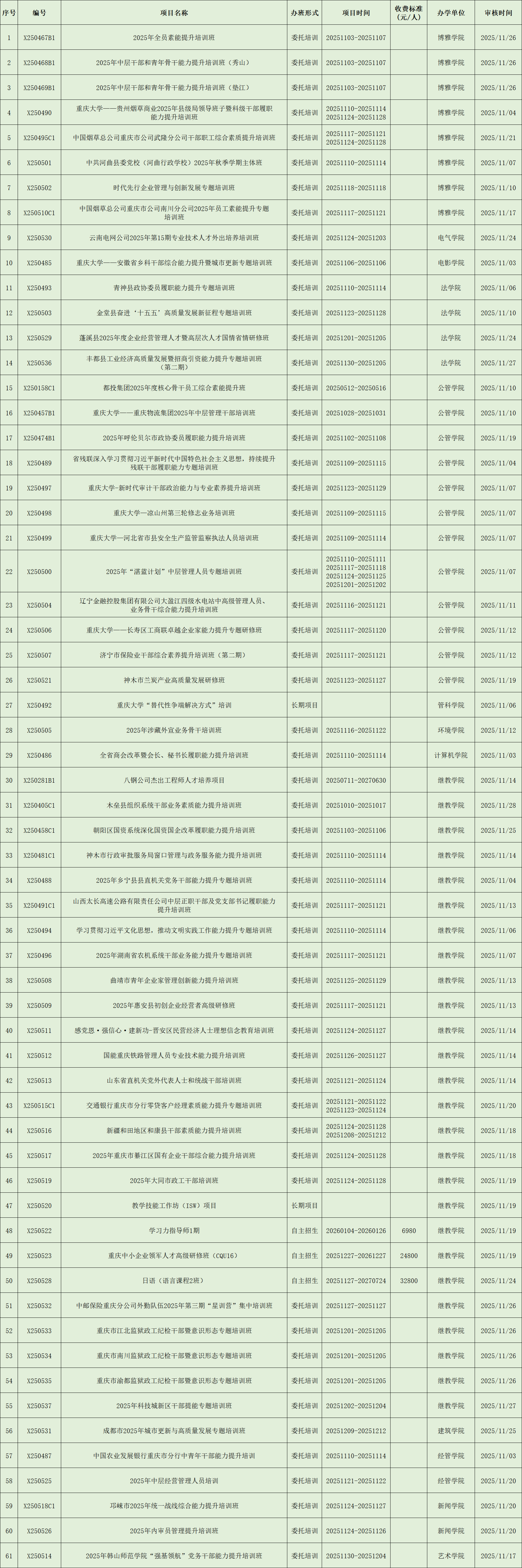 非学历教育项目列表(2025年11月)