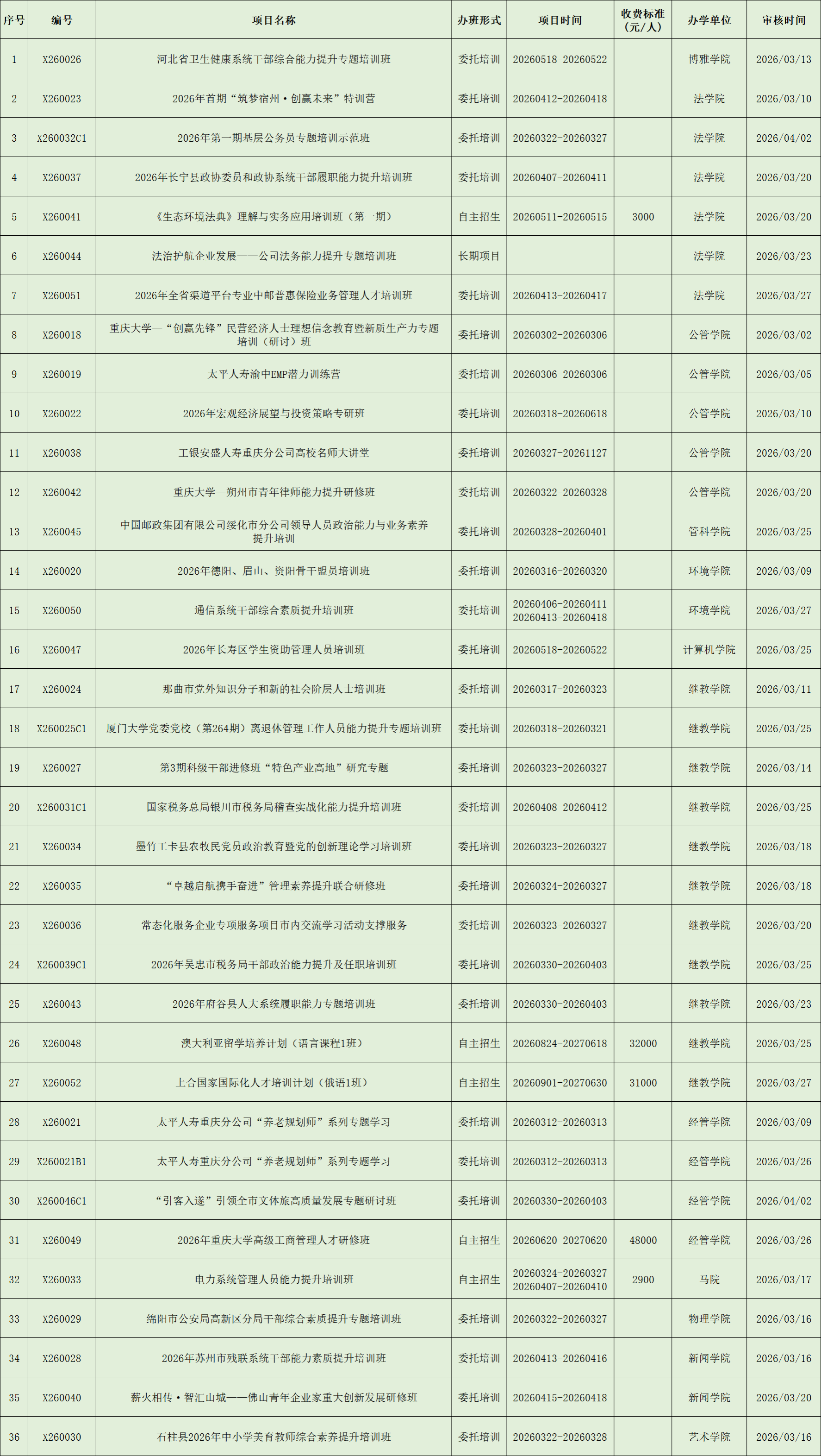 非学历教育项目列表(2026年3月)