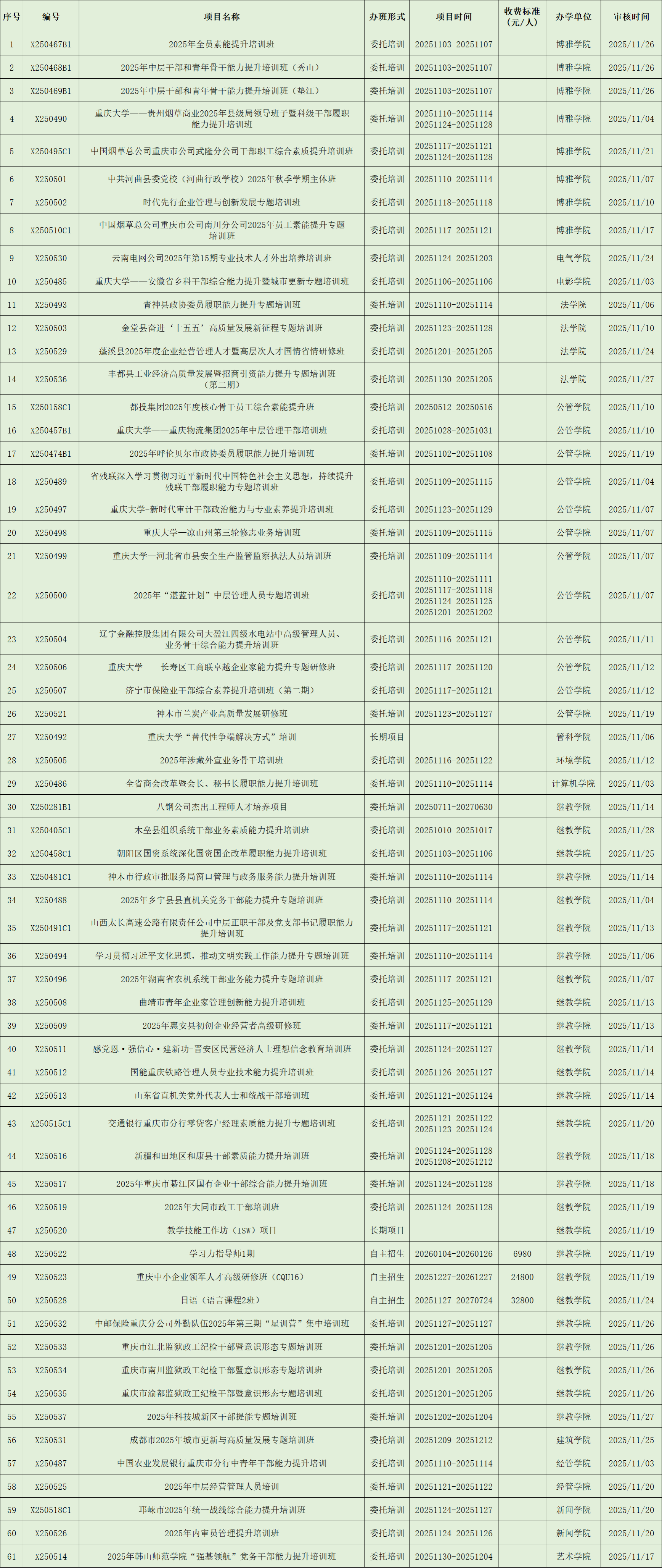 非学历教育项目列表(2025年11月)