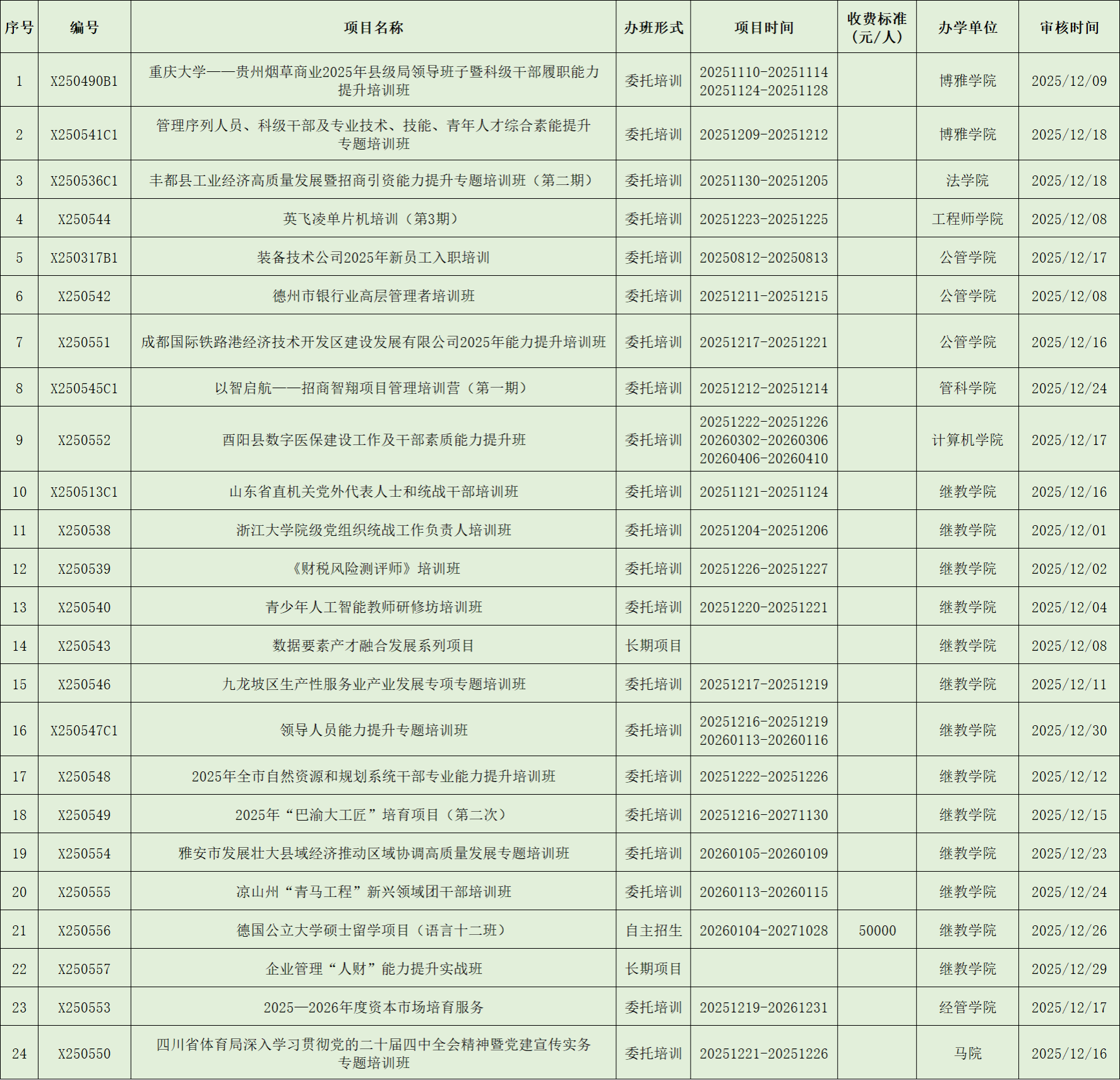 非学历教育项目列表(2025年12月)