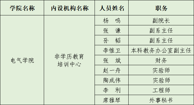 电气学院非学历教育从业人员信息